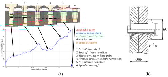 An installed blind fastener is classified as correctly installed (OK) or incorrectly installed (NOK), depending on the representative dimensions of its formed head, namely, the head diameter (J) and the head height (K), as shown in Figure 1. The “break off limit” was inspected from the accessible side of the joint and it was thus out of scope with current research. After installation, once the rivet was deformed and the blind rivet head was formed, the resulting blind head diameter J must have reached a minimum value. Accordingly, the resulting head height K must have been deformed enough as to be below its maximum allowed value. Currently, inspection of the blind formed head is not performed except for during initial machine installation and process set-up stages.