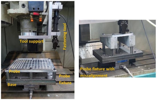 An experimental setup was designed for fastener installation analysis purposes, as shown in Figure 2. It was constituted by a 3-axis CNC milling center, in which a fastening tool-head was installed. Fasteners were installed into previously drilled probes, which were mounted onto a probe fixture. This whole assembly relied on a dynamometric plate capable of measuring forces along the 3 axes. In addition, the fastening head was capable or measuring the installation torque, spindle revolutions, air pressure and air flow.
