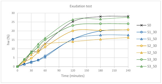 Regarding the percentage substitution, the results clearly show that with higher substitution percentages, the exudation decreased.