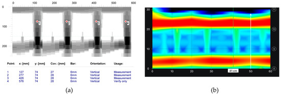 The accuracy of electromagnetic tests mainly depends on the depth, spacing, and arrangement of rebars toward the direction of scanning, the type of reinforcement, and the quality of concrete surface [10,11]. A type of spectral analysis and compensation procedures of systematic measuring errors also affect the accuracy of the tests.