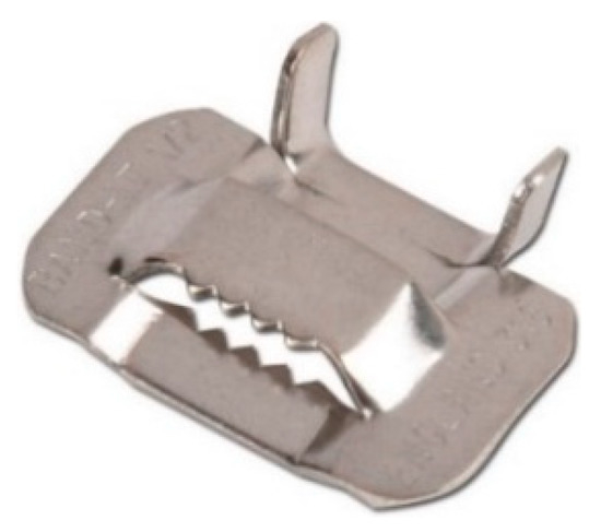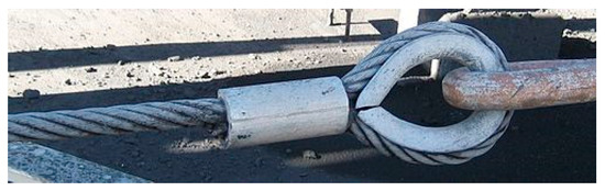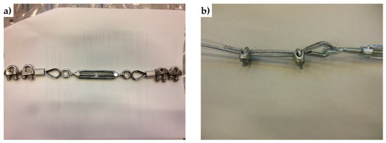 The number of clamps needed to terminate a wire rope, usually three or more, depends on the diameter of the wire rope. To choose the correct number of clamps for the second combined technique, the authors tested assemblies with three clamps (one ferrule and two clips, as in Figure 53a) and assemblies with two clamps (two clips, as in Figure 53b), finding the latter more performing for a 3 mm single strand zinc-coated wire rope.