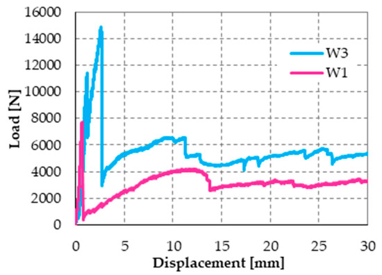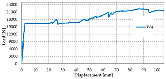 Load/displacement diagram of Specimen W4 in a flexural test performed in the load control.