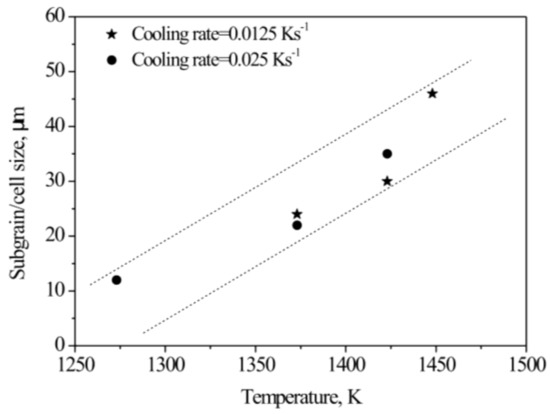 - Subgrain/cell size increased linearly with increasing final temperature of deformation in the temperature range 1273 to 1448 K.
