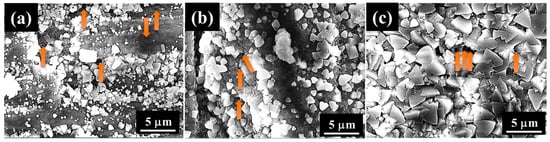 SEM images of films prepared at 423 K for 5 h on (a) AZ31, (b) AZ61, and (c) AZ91D after the immersion for 480 h in 5 mass% NaCl aqueous solution. All arrows show traces of pitting.