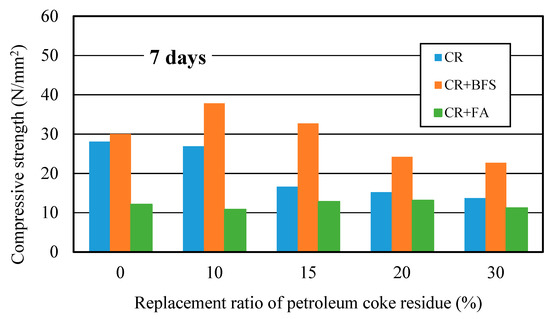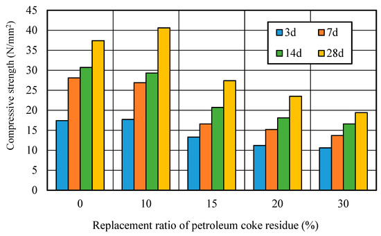 Strength of petroleum coke residue concrete with different replacement ratios.