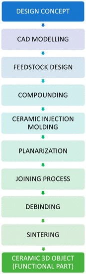 - Moritz, T.; Lenk, R. Ceramic injection moulding: A review of developments in production technology, materials and applications. PIM Int. 2009, 3, 23–34. [Google Scholar]