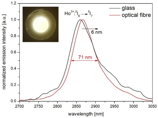 Ragin, T.; Baranowska, A.; Kochanowicz, M.; Zmojda, J.; Miluski, P.; Dorosz, D. Study of Mid-Infrared Emission and Structural Properties of Heavy Metal Oxide Glass and Optical Fibre Co-Doped with Ho3+/Yb3+ Ions. Materials 2019, 12, 1238. https://doi.org/10.3390/ma12081238