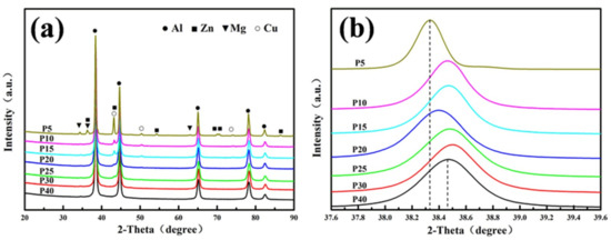 - With the extension of the milling time, the Zn, Mg and Cu alloy elements are gradually dissolved in α-Al. When the ball milling time is 30 h, complete solid solution is achieved, and no intermetallic phase is formed. The ball-milled Al powder undergoes flattening, crushing and welding processes. When the ball milling time is 30 h, the powder particle size is 2–5 μm. The α-Al grain size was 23.2 nm. The lattice distortion was 0.156% causing by the solid solution of the alloying elements.