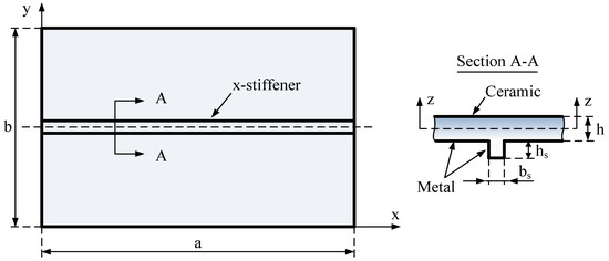 A functionally graded material (FGM) plate stiffened by an x-direction stiffener.