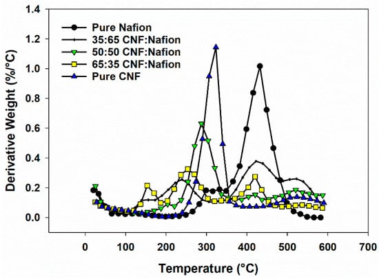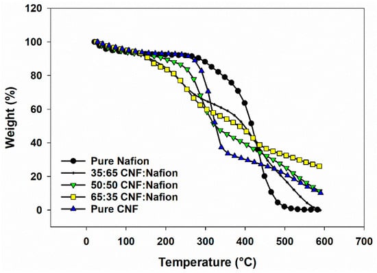 - Deng, Q.; Wilkie, C.A.; Moore, R.B.; Mauritz, K.A. TGA–FTi.r. investigation of the thermal degradation of Nafion® and Nafion®/[silicon oxide]-based nanocomposites. Polymer 1998, 39, 5961–5972. [Google Scholar] [CrossRef]
