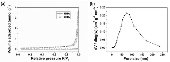 (a) Nitrogen sorption isotherms of HHA and CHA scaffolds; (b) the BJH-adsorption pore size distribution of the HHA scaffold.