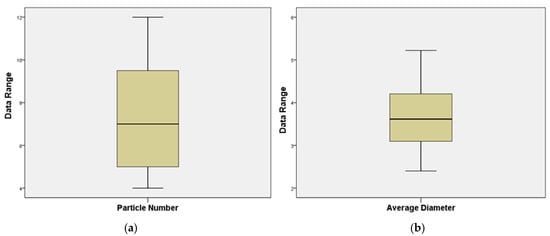 The results of normality testing and outlier testing are presented in Figure 8 and Figure 9, respectively. As expected, both particle number and average diameter follow the normal distribution with the mean value of 7.31 and 3.65, respectively.