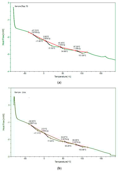 Result of DSC tests: (a) Pen 70 and (b) CMA.