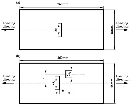 Geometry of the test specimens: (a) the single crack specimen; and (b) the parallel crack specimen.