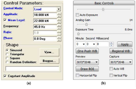 Experimental setups: (a) the INSTRON 8800 fatigue testing machine; and (b) the digital microscope system.