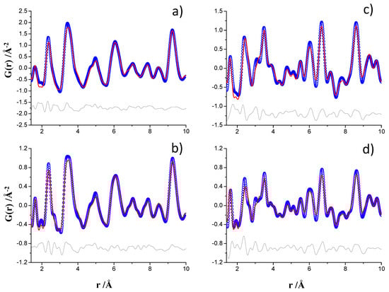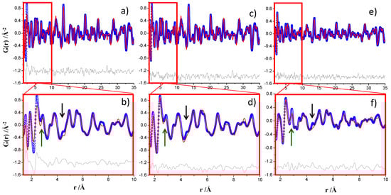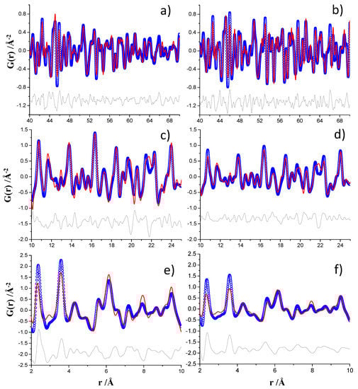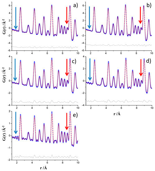 - Farrow, C.L.; Juhas, P.; Liu, J.W.; Bryndin, D.; Božin, E.S.; Bloch, J.; Proffen, T.; Billinge, S.J.L. PDFfit2 and PDFgui: computer programs for studying nanostructure in crystals. J. Phys. Condens. Matter 2007, 19, 335219. [Google Scholar] [CrossRef]
