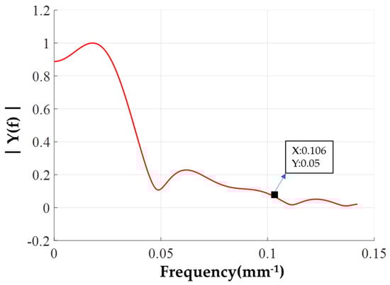 Figuring ability of a removal function refers to the range of spatial frequency error that can be corrected [23]. Xuhui Xie [24] and Xusheng Zhou [25] et al. highlighted that the cutoff frequency of the removal function is the corresponding frequency at which the normalized amplitude spectrum of the removal function contour drops to 5% of the peak value. The removal function is capable of effectively correcting the surface error components below this cutoff spatial frequency. Figure 11 shows the normalized magnitude spectrum of the removal function contour, and the corresponding frequency is about 0.11 1/mm when the amplitude spectrum dropped to 5% of the peak. Thus, the removal function made under the optimal parameters is considered to be able to effectively correct the surface error of spatial wavelength greater than 10 mm.