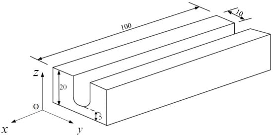 The 3D computational domain is shown in Figure 4. The bottom width of the gap is 10 mm, the top width is 12 mm, and the depth is 25 mm, as given in Section 2.1.