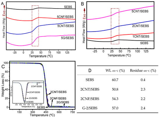 | 2 wt.% | 2 CNF/SEBS | 2 CNT/SEBS | 2 G/SEBS |