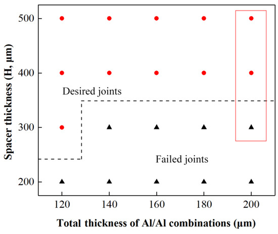 2 and total thickness, in which the tested preliminary joints were all produced by referring to the process windows in