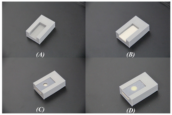 Pictures from (A–D) show the use of jigs during the process of bonding the veneering composite to the specimens.
