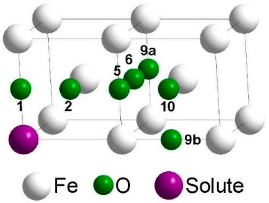 - Wang, X.; Posselt, M.; Faßbender, J. Influence of substitutional atoms on the diffusion of oxygen in dilute iron alloys. Phys. Rev. B 2018, 98, 064103. [Google Scholar] [CrossRef]