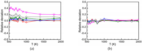 A verification that the ratios and determined by Equation (3) are equivalent to those calculated by separate AKMC simulations for different concentrations of the substitutional solutes is also important. It was found that the relative deviation of the AKMC data from those determined by Equation (3) is below about 2% in the temperature range between 500 and 2000 K, for all concentrations of Ti, Cr, and Si considered. These results justify the use of Equation (3), in combination with Equations (1) and (2), to determine the total oxygen diffusion coefficient at given concentration and temperature.