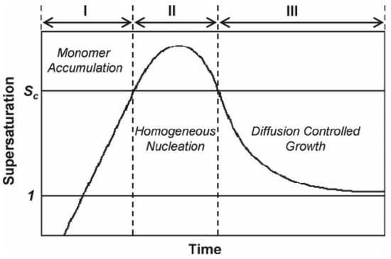 Nucleation and crystal growth. Reproduced with permission []. Copyright 1950, American Chemical Society.