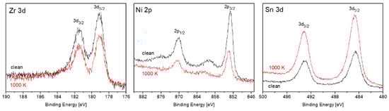 Representative XPS spectra of Zr, Ni and Sn after exposing to oxygen at 1000 K.