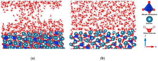 - Salah Uddin, K.M.; Middendorf, B. Atomistic modeling of early Hydration of C3S. In Computational Modelling of Concrete Structures: Proceedings of the Conference on Computational Modelling of Concrete and Concrete Structures (EURO-C 2018), Bad Hofgastein, Austria, 26 February–1 March, 2018; Meschke, G., Pichler, B., Rots, J.G., Eds.; CRC Press/Balkema: Leiden, The Netherlands, 2018; ISBN 9781315182964. [Google Scholar]