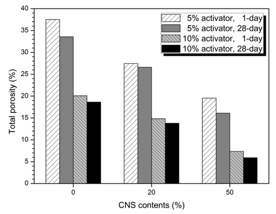 Previous studies of alkali-activated slag cement (AASC) using nano-silica have mentioned mostly powdered nano-silica and binder weight replacement methods, which have a rapid decrease in fluidity, a short setting time and a low nano-silica replacement rate (< 5%). In this study, colloidal nano-silica (CNS) was used and the mixing-water weight substitution method was applied. The substitution method was newly applied to improve the dispersibility of nano-silica and to increase the substitution rate. In the experiment, the CNS was replaced by 0, 10, 20, 30, 40, and 50% of the mixing-water weight. As a result, as the substitution rate of CNS increased, the fluidity decreased, and the setting time decreased. High compressive strength values and increased rates were also observed, and the diameter and volume of pores decreased rapidly. In particular, the increase of CNS replacement rate had the greatest effect on decrease of medium capillary pores (50–10 nm) and increase of gel pores (< 10 nm). The new displacement method was able to replace up to 50% of the mixing water. As shown in the experimental results, despite the high substitution rate of 50%, the minimum fluidity of the mixture was secured, and a high-strength and compact matrix could be formed.