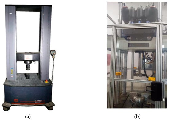 Figure 2. Testing machines for: (a) quasi-static compression; (b) dynamic compression.