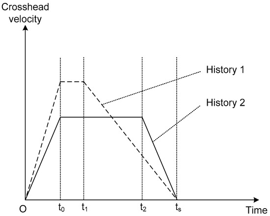 Figure 7. Illustration of the crosshead time histories of two designed loading speeds.