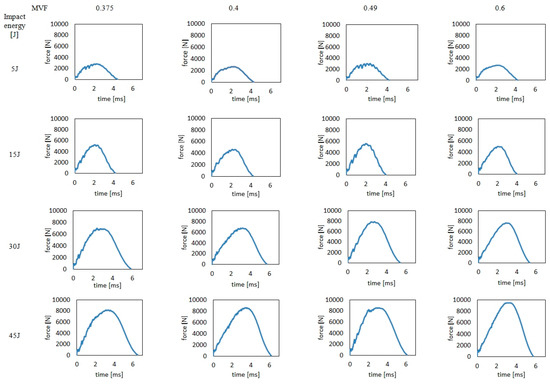 The force–time curves of HTCL with various metal volume fraction (MVF) after low-velocity impact.