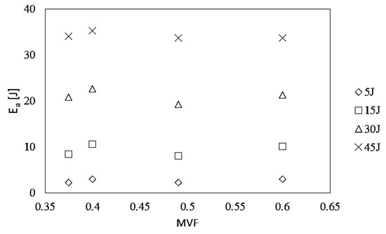 Figure 6 shows the relationship between the value of absorbed energy and the metal volume fraction parameter of the HTCL laminate for impact energies in the range of 5 to 45 J.