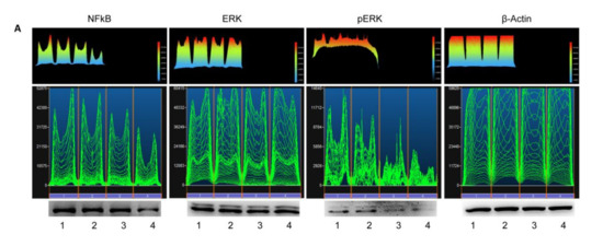 3.4. Signaling Pathway ERK, pERK and NF-kB Analyses