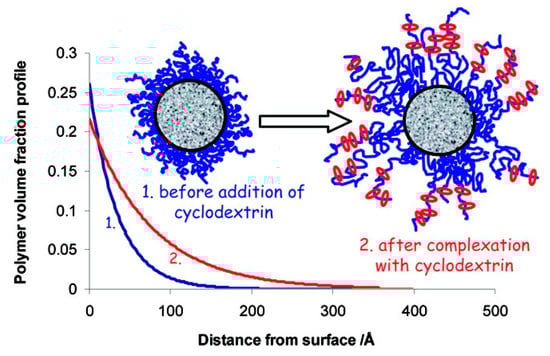 Plot presenting the effect of adding α-CD on the polymer volume profile. Adapted with permission from Langmuir 2008, 24, 10005–10010 [149]. Copyright (2008) American Chemical Society.