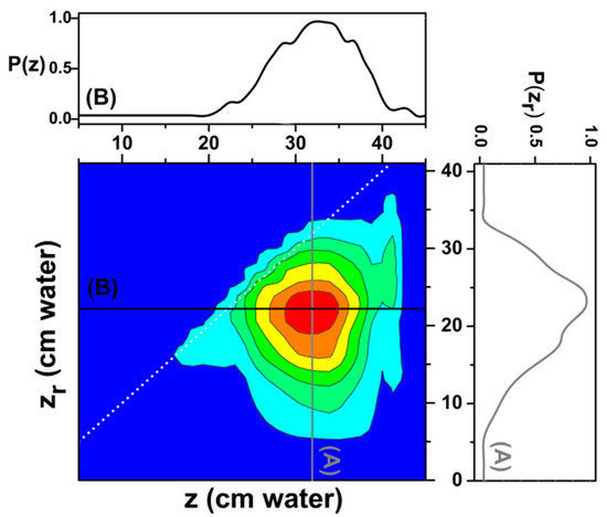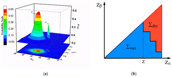 In hysteresis process, the Major Hysteresis Loop (MHL) is considered as the zero-order curve and the primary scanning curve inside of them is called First-Order Reversal Curves (FORC), where the FORC have, by definition, the starting point ( in Figure 4b) on the Major Hysteresis Loop. The MHL have two branches (ascendant and descendent) which means there are two sets of first-order reversal curves (re-wetting and re-drying curves) that can be measured, one for each branch of MHL. If we concentrate our discussion on the set of FORCs starting on the ascending branch of the MHL, we can specify that one such FORC starts on the major loop and ends at the empty state. The values of the output on a FORC (in our case ) are depending on two independent variables: the input value in the reversal point, , and the actual input value when is measured, z: , as in Figure 4b. If we compare this notation with the one made by Mayergoyz [34] in GPM, we can identify the pair , with the mention that are the switching points of the FORCs measure starting on the ascending branch of MHL. In the identification technique for the CPM, but also for the GPM, it can be easily found the link between the Preisach distribution and the FORC data. The irreversible component of the Preisach distribution can be determined by using the second order mixed partial derivative with respect to the two switching points: