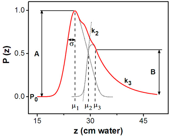 where we have used Gaussian distributions for both components and assumed that the irreversible hysterons of pore suction have statistically independent switches from “filled” to “empty” state, respectively, a jump from “empty” to “filled”. The weight of the irreversible component is noted with S and represents the squareness of hysteresis loop; are the standard deviations and the mean values of the three independent distributions taken into account in this case (the distribution for the reversible part and the distributions for the two switching values for z).