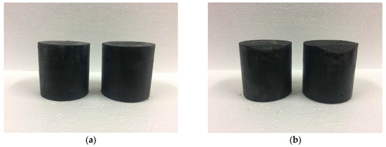 M–S–H cement-solidified body with 0.8 wt % Cs+ before (a) and after (b) freeze–thaw testing.