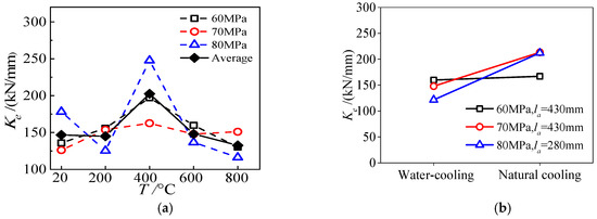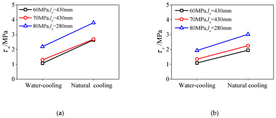 Shear bond stiffness of specimens (a) maximum temperature; (b) cooling method.