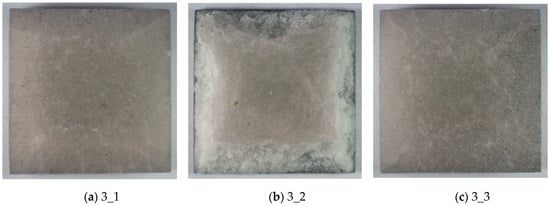 Figure 8 presents photos for all samples in the series for a load of 1.5 bar. In this case, sample 3_2 was damaged on the perimeter, but the TBC barrier remained consistent with the substrate. The remaining samples 3_1 and 3_3 showed numerous cracks, especially at the edges. The results show that a load limit value that must not be exceeded was reached.