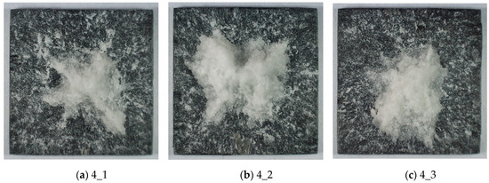 The TBC ceramic mat of samples after impact with the pressure of 1.5 bar. (a) sample 3_1 (b) sample 3_2 (c) sample 3_3.