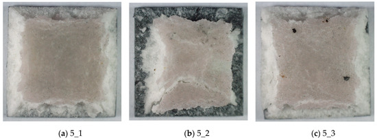 The TBC ceramic mats of samples after compressive impact tests at 55 °C. (a) sample 5_1 (b) sample 5_2 (c) sample 5_3.