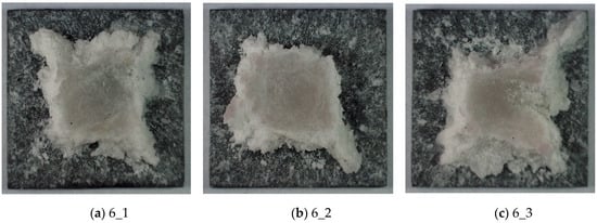 The TBC ceramic mats of samples after compressive impact the tests at 90 °C. (a) sample 6_1 (b) sample 6_2 (c) sample 6_3.