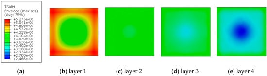 Tsai–Hill criterion for the PMC layers. (a) Tsai-Hill criterion (b) layer 1 (c) layer 2 (d) layer 3 (e) layer 4.