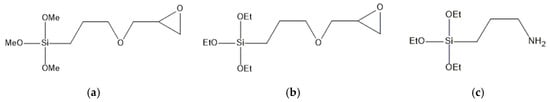 These compounds contain two types of functional groups: the silane reactive or hydrolysable groups, which exhibit affinity to the filler, and an organic chain, which terminates in a functional group with chemical affinity to the polymer [7,10]. One of the most common silane reactive groups is that of the alkoxy, which often must first undergo hydrolysis in order to form a stable covalent bond with the filler. They are most effective in combination with filler types with many reactive hydroxyl groups and an adequate amount of surface water, forming siloxane bonds with the substrate and the reactive organic chains to bond with the polymer [11]. This can provide a stable link between the polymer and the filler, with the possibility to enhance mechanical strength, thermal properties and chemical resistance.