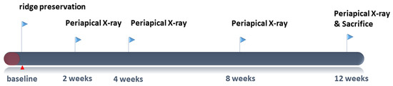 - Kim, J.J.; Schwarz, F.; Song, H.Y.; Choi, Y.; Kang, K.R.; Koo, K.T. Ridge preservation of extraction sockets with chronic pathology using Bio-Oss((R)) Collagen with or without collagen membrane: An experimental study in dogs. Clin. Oral Implant. Res. 2017, 28, 727–733. [Google Scholar] [CrossRef] [PubMed]