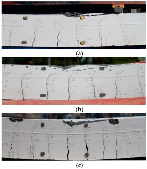 Crack shaping and development in the test samples: (a) HPC-HSC; (b) REC-1; (c) REC-2.
