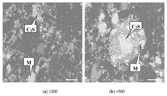 SEM images of the lower modified slag after grinding for 300 s.